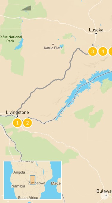 Map of Zambia Safari Adventure: Livingstone & Kafue – 7 Days