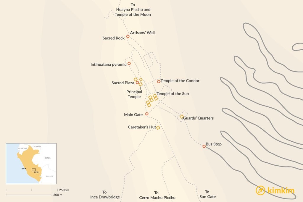 To the west, ascend the staircase to the **Intihuatana pyramid**, the highest point in the urban sector of **Machu Picchu**. The pyramid’s centerpiece is an unusual sculpture, considered the most sacred object in the entire site. Further along, you’ll encounter the 25-foot-long **Sacred Rock** and the **Artisans’ Wall**, arguably the finest example of stonework on the site. The tour concludes at the **Temple of the Condor**, where a sculpted rock depicts the condor, a bird that remains revered by the Andean people.