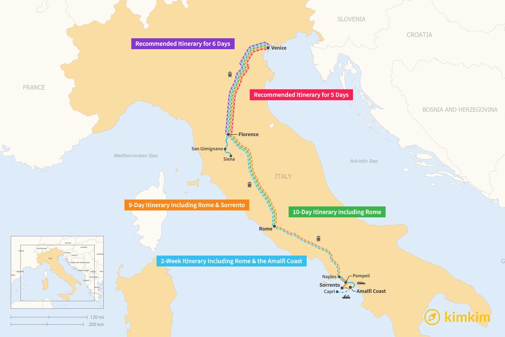 For those with more time to spare, consider these extended itineraries that incorporate other iconic Italian destinations: